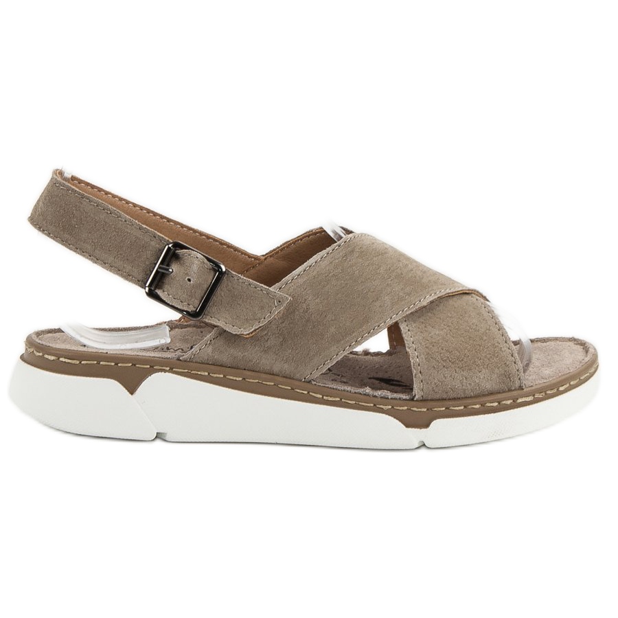 Sandale karakterizira ravna peta i platforma visine 3,5 cm, što ih čini udobnima i pri dužem hodu. Osim toga, korištenje prirodne kože u ulošku omogućuje vam da se osjećate ugodno, čak iu najtoplijim danima. Kopčanje na kopču osigurava stabilnost stopala, a otvorena peta daje lakoću svakom stajlingu.