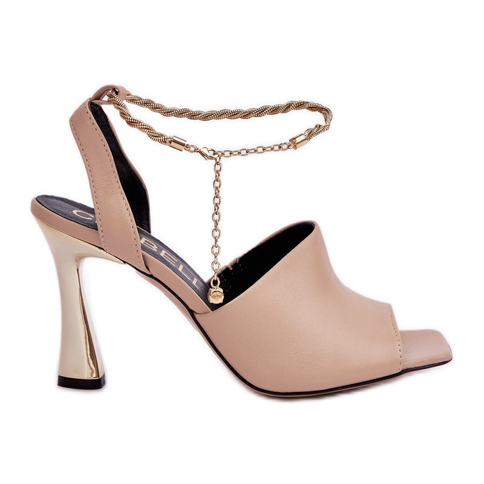 CheBello Kožne sandale na visokoj peti s ukrasnom Chebello 4440 bež narukvica
