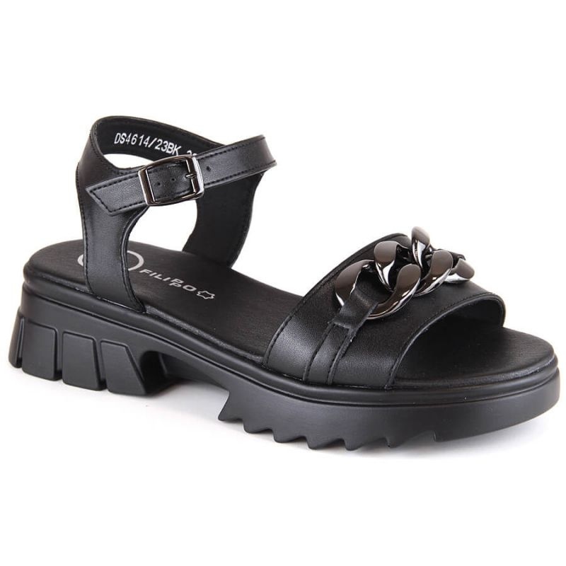 Filippo DS4614 kožne sandale - crne s lancem