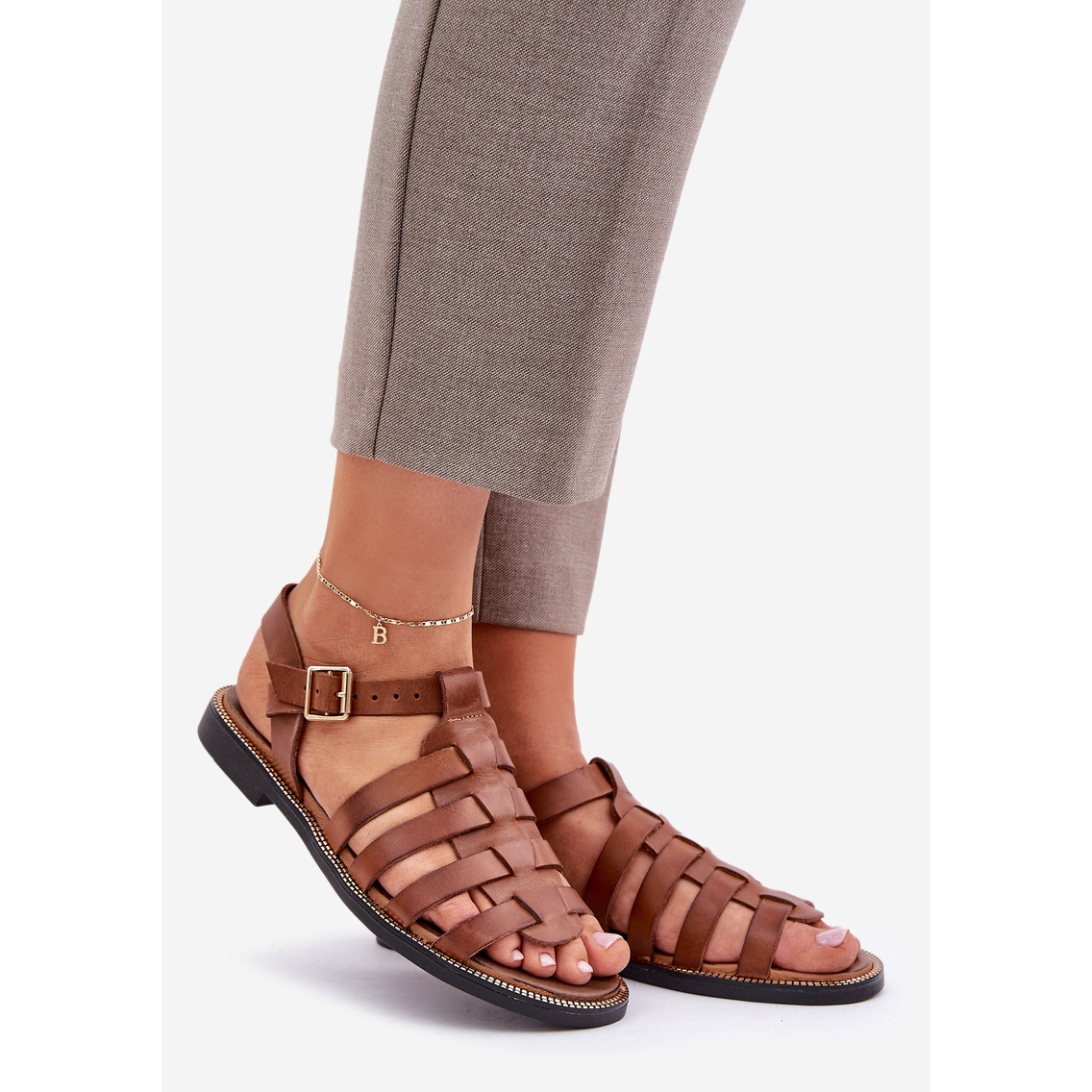 Zazoo Kožne sandale s ravnim potpeticama zazoo 3686 deva smeđa