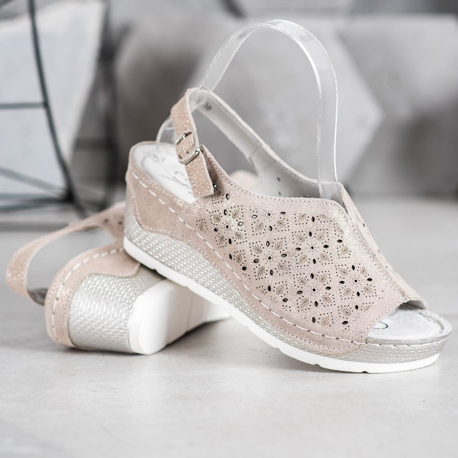 Klasične wedge sandale, s platformom visine 6,5 cm i 2,5 cm, savršeno ističu figuru i osiguravaju cjelodnevnu udobnost. Delikatna kopča na stražnjoj strani omogućuje jednostavno podešavanje, a otvorena peta daje sandalama lakoću. Zahvaljujući sintetičkom potplatu s gazištem, pružaju stabilnost i sigurnost na različitim podlogama.