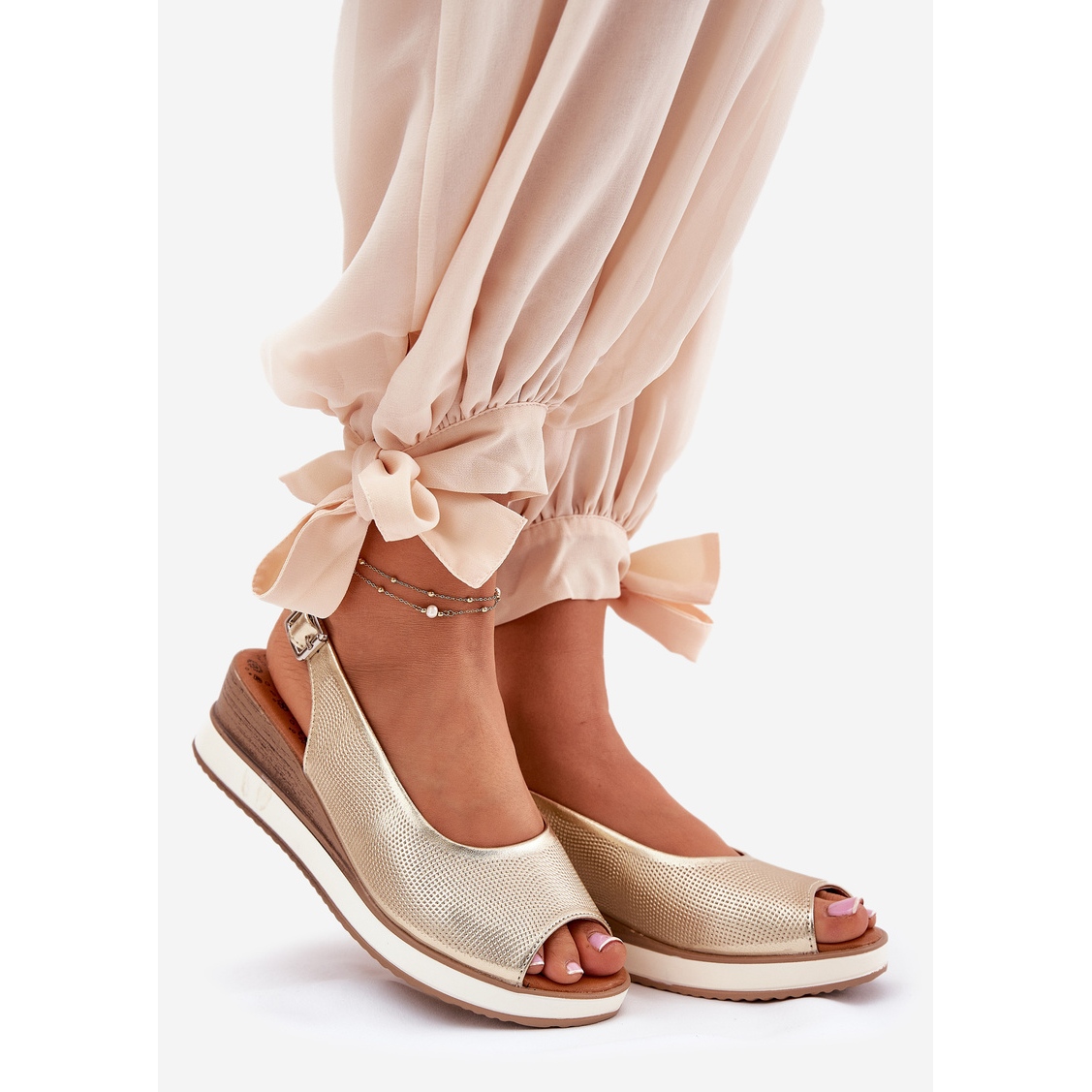 Otkrijte eleganciju i praktičnost sandalama na Artikeru 56C2312 klin u jedinstvenoj zlatnoj boji. Ove ženske sandale bile su pažljivo izrađene od visokokvalitetne prirodne kože, što pruža ne samo estetski izgled, već i udobnost nošenja cijeli dan.