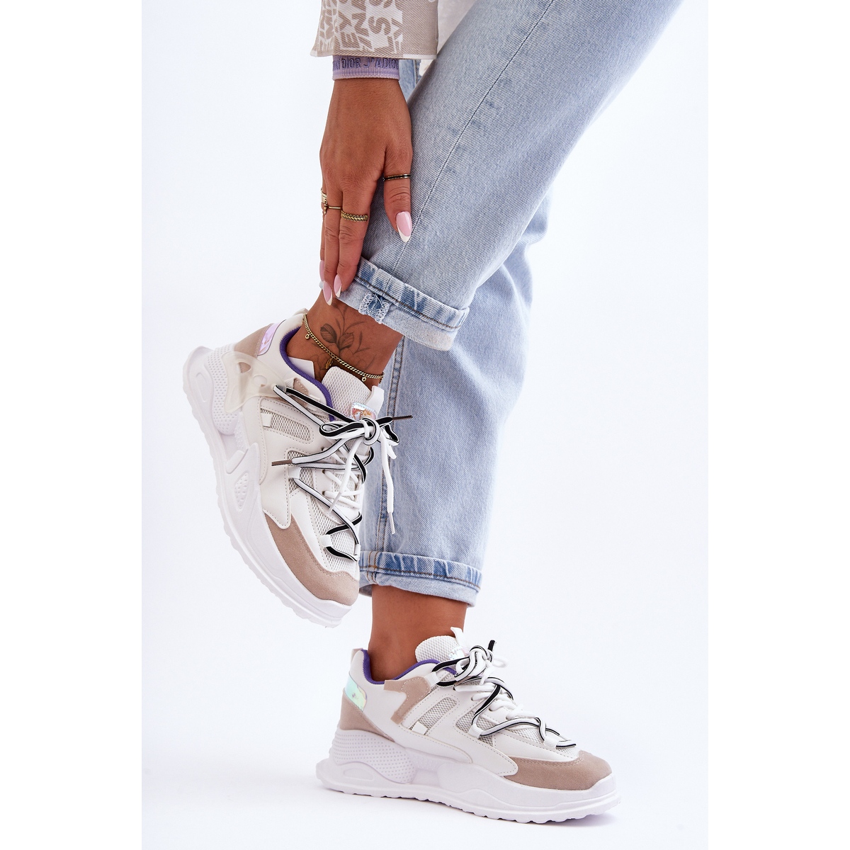 Detalji: Kožne sportske cipele s platformom Bijeli Sifel bijela
