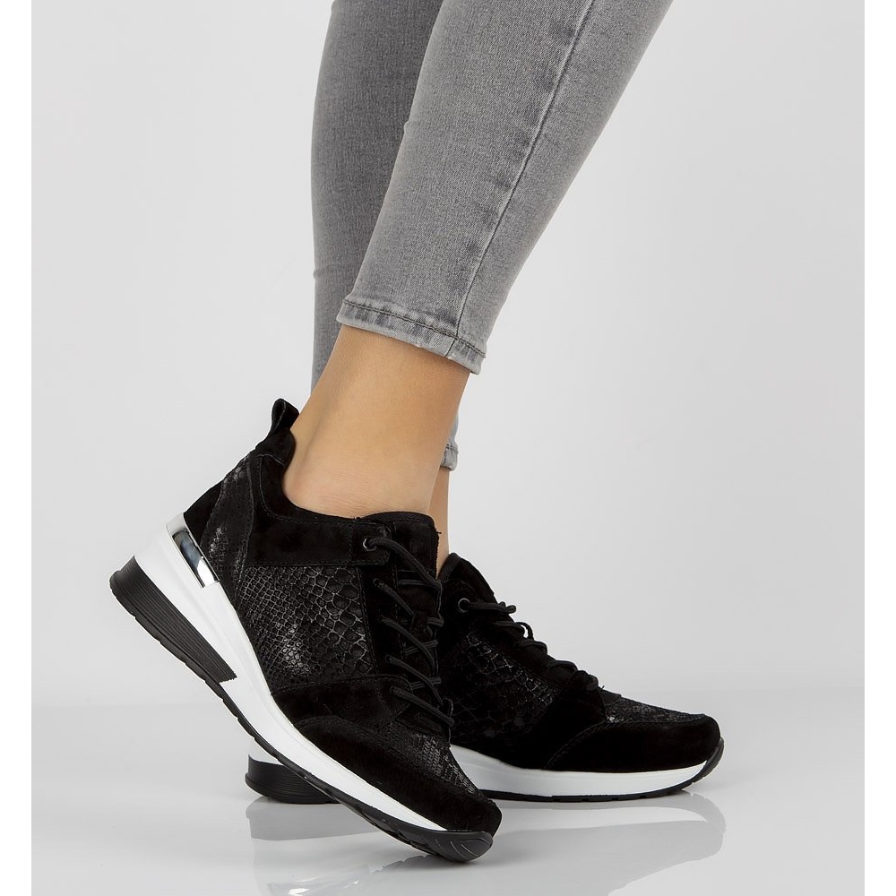 Visina potpetice od 5 cm i visine platforme od 1,5 cm dodaju dodatnu udobnost, a niski gornji dio (6,5 cm) čini da cipele savršeno pristaju uz različite stilove. Vrijedno je obratiti pozornost na njihovu univerzalnu, crnu boju koja se lako može uklopiti uz svaki ormar.