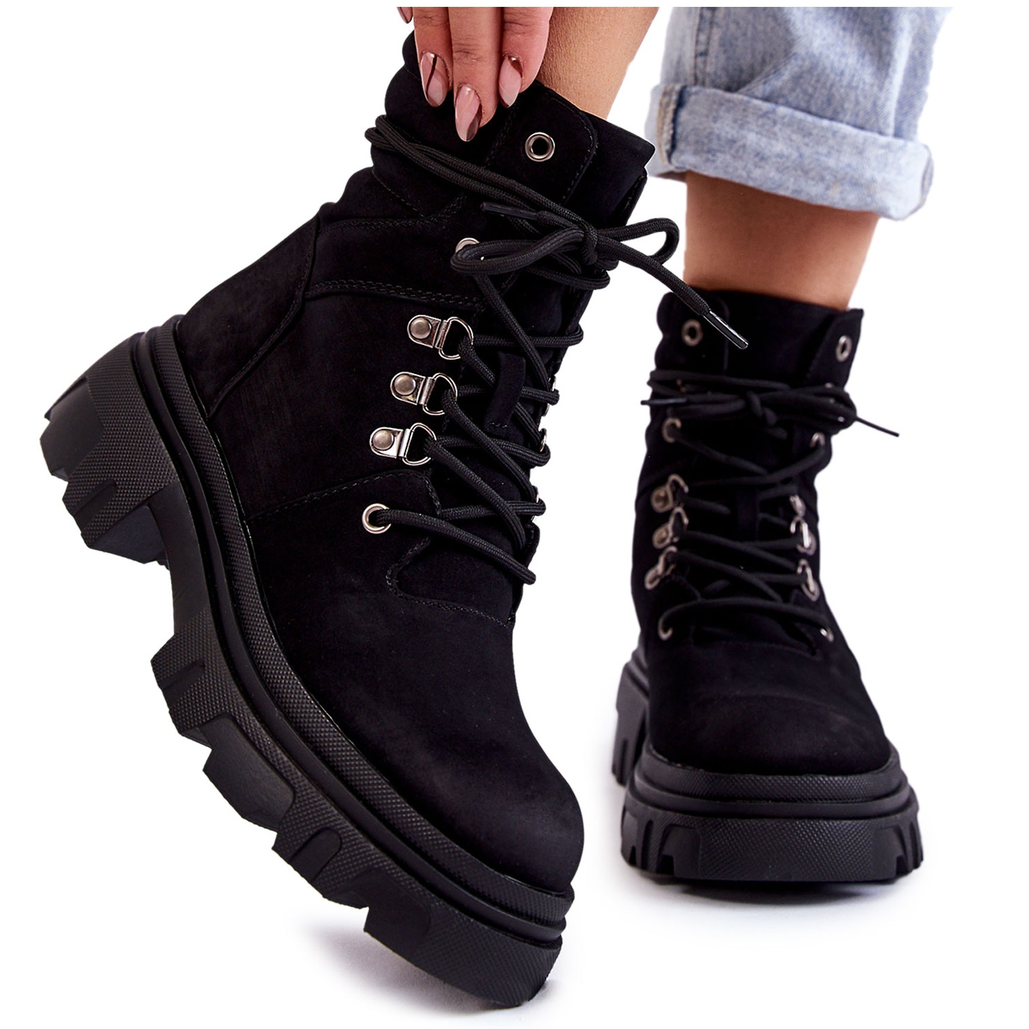Pojedinosti: Kožne tople čizme na vezanje crne Merisha crna