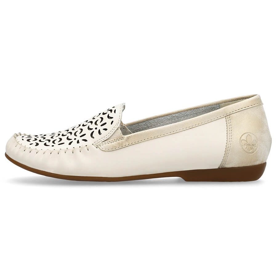 Pojedinosti: Kožne udobne cipele, ženske ažurne mokasine, bež Rieker L6350-60