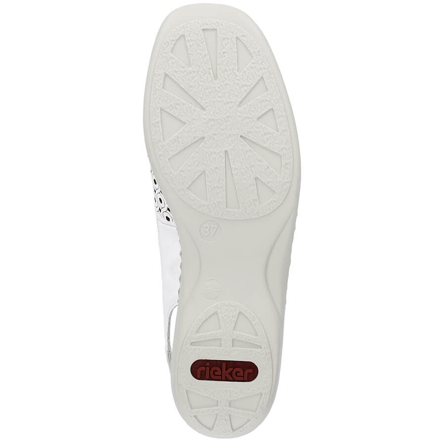 Detalji: Kožne udobne ženske pune ažur sandale, bijele Rieker 41350-80 bijela
