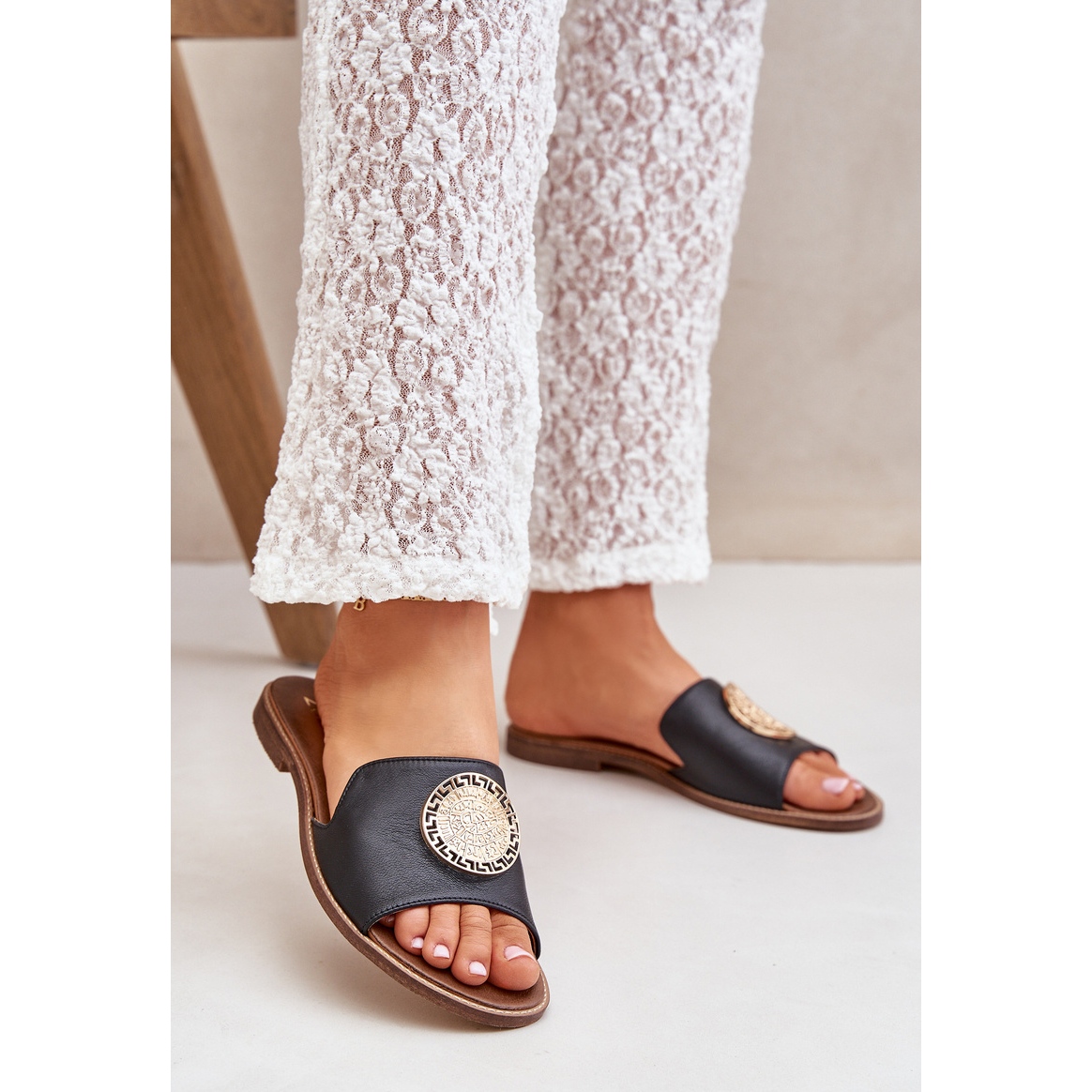 Kožne zaklopke s ravnim ukrašenim ukrasom zazoo 3047/o crni crna