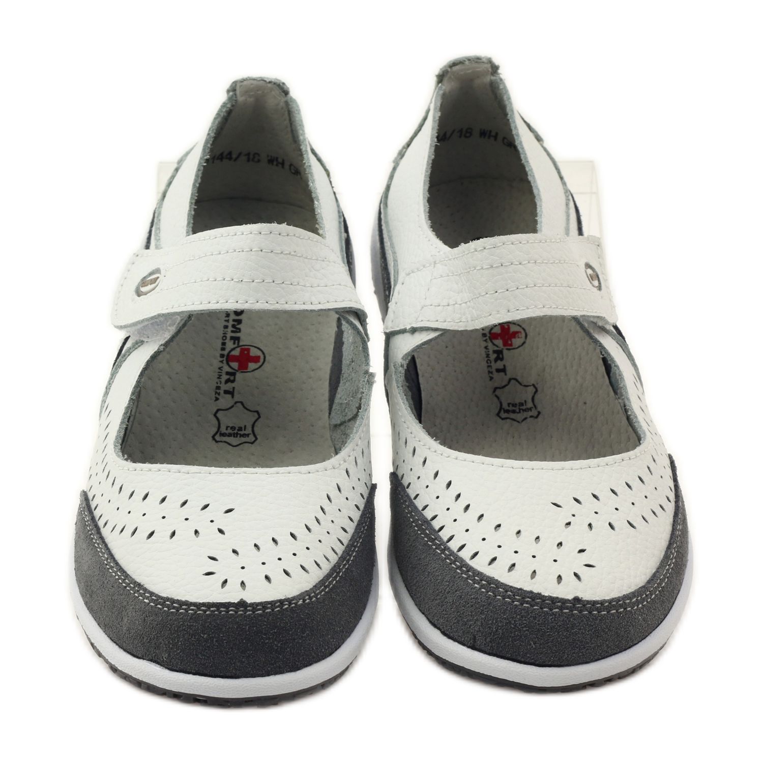 Otkrijte iznimnu udobnost i eleganciju uz Vinceza ženske kožne balerinke u bijeloj i sivoj boji. Model DP144 savršen je izbor za proljeće i ljeto jer spaja stil, udobnost i kvalitetu izrade.