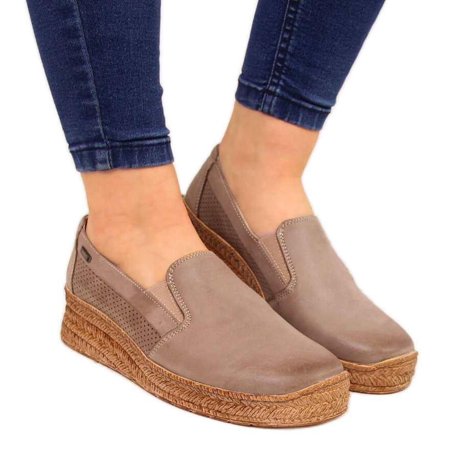 Helios Kožne ženske cipele s bež klin Helios 350