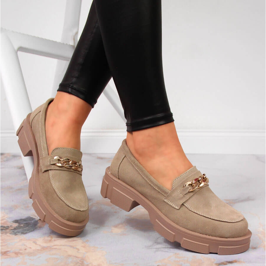 Detalji: Kožne ženske cipele s lancem bež Filippo