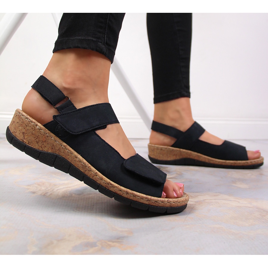Detalji: Kožne ženske sandale na klin Rieker V7170-14 mornarsko plava