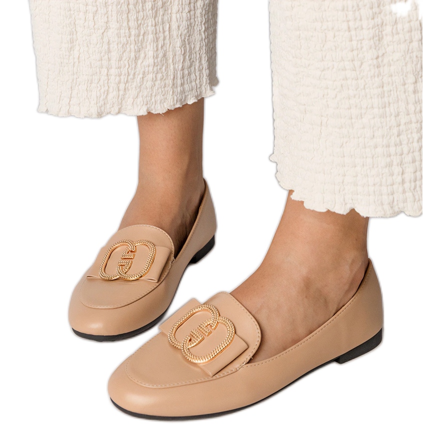 Mokasine u suptilnoj nijansi marelice odlikuju se elegantnim zlatnim ukrasom, hvatajući oko i dodaju stil bilo kojoj stilizaciji. Njihova niska, ravna peta s visinom od 1 cm osigurava udobnost, posebno savršenu za duge sate. Učvršćivač umetanja omogućuje vam da brzo stavite i skinete, što je nesumnjiva prednost u svakodnevnoj upotrebi.