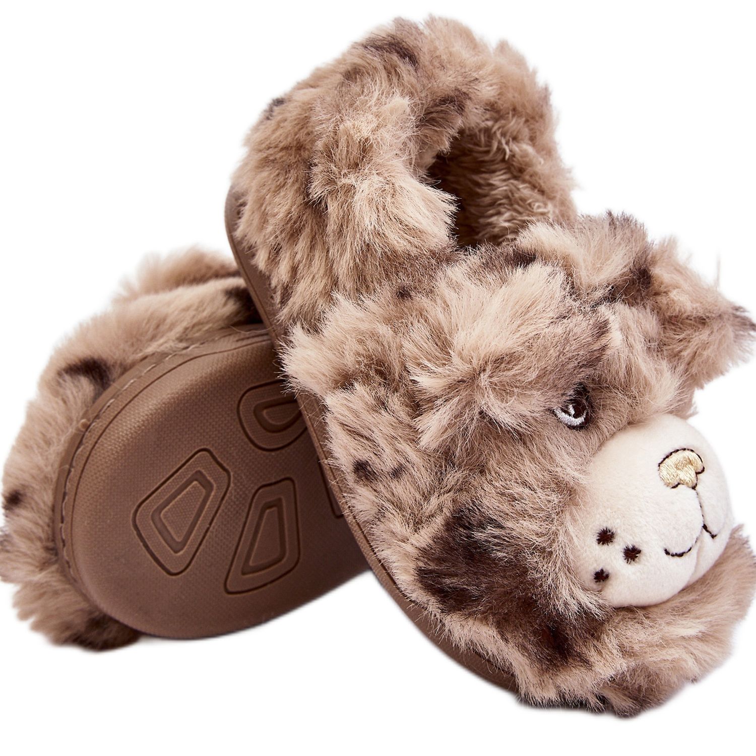 Pojedinosti: Krznene dječje papuče s medvjedićem, tamno bež Apolanie