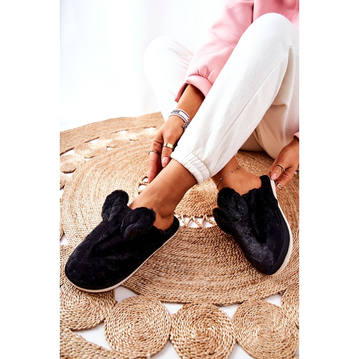 Pojedinosti: Krznene papuče s crnim Thorpe ušima crna
