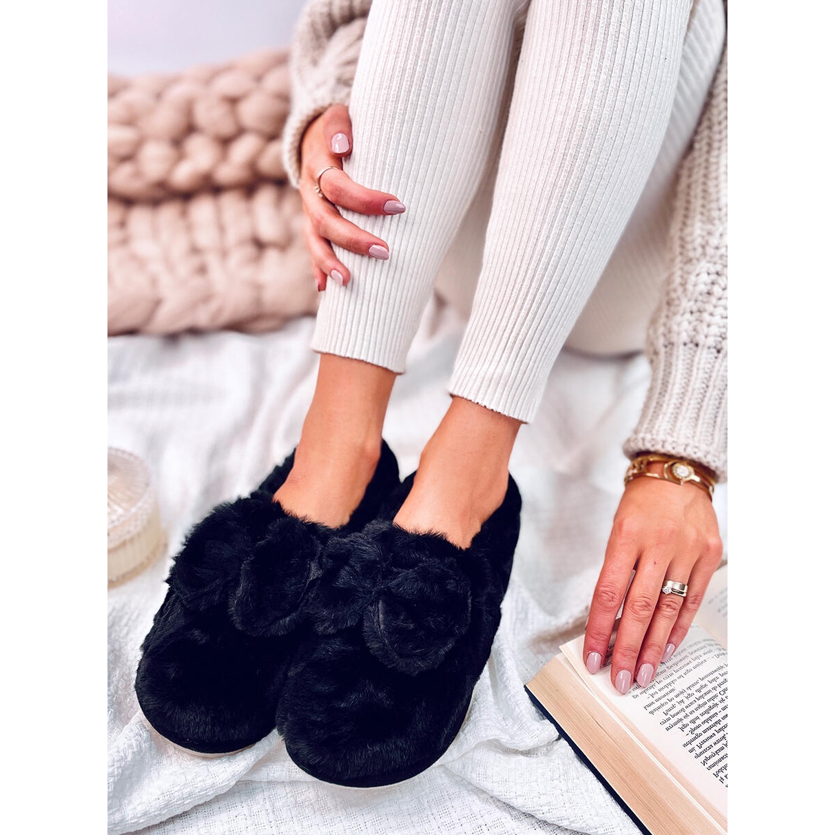 Inna marka Krznene papuče s mašnom Emres Black crno