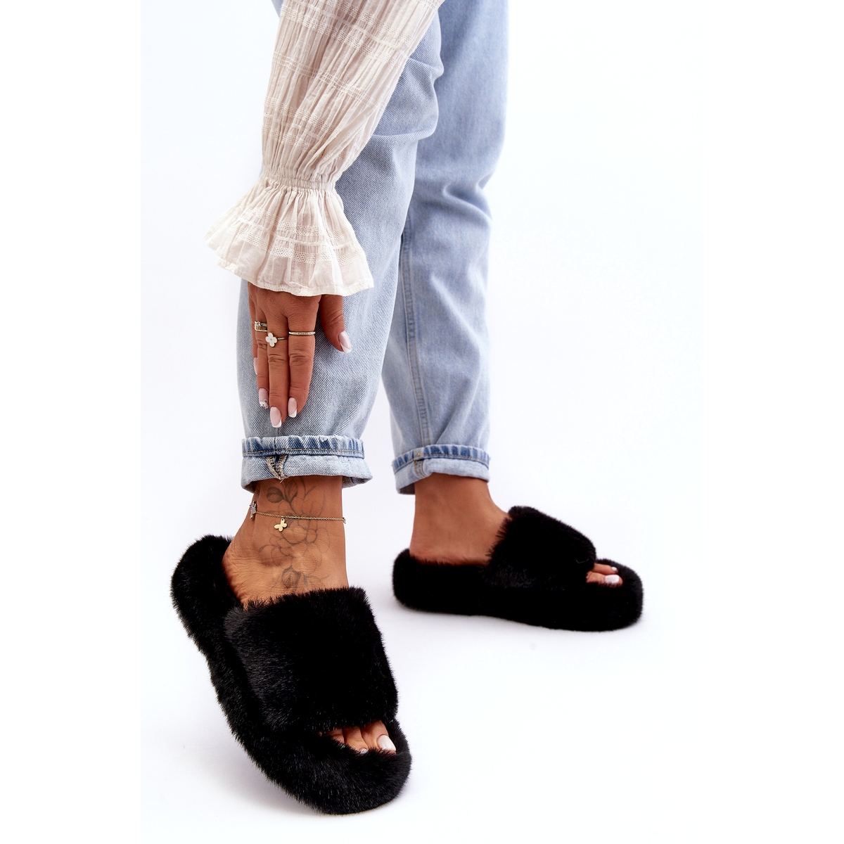 Pojedinosti: Krzno ženske papuče od krzna crna