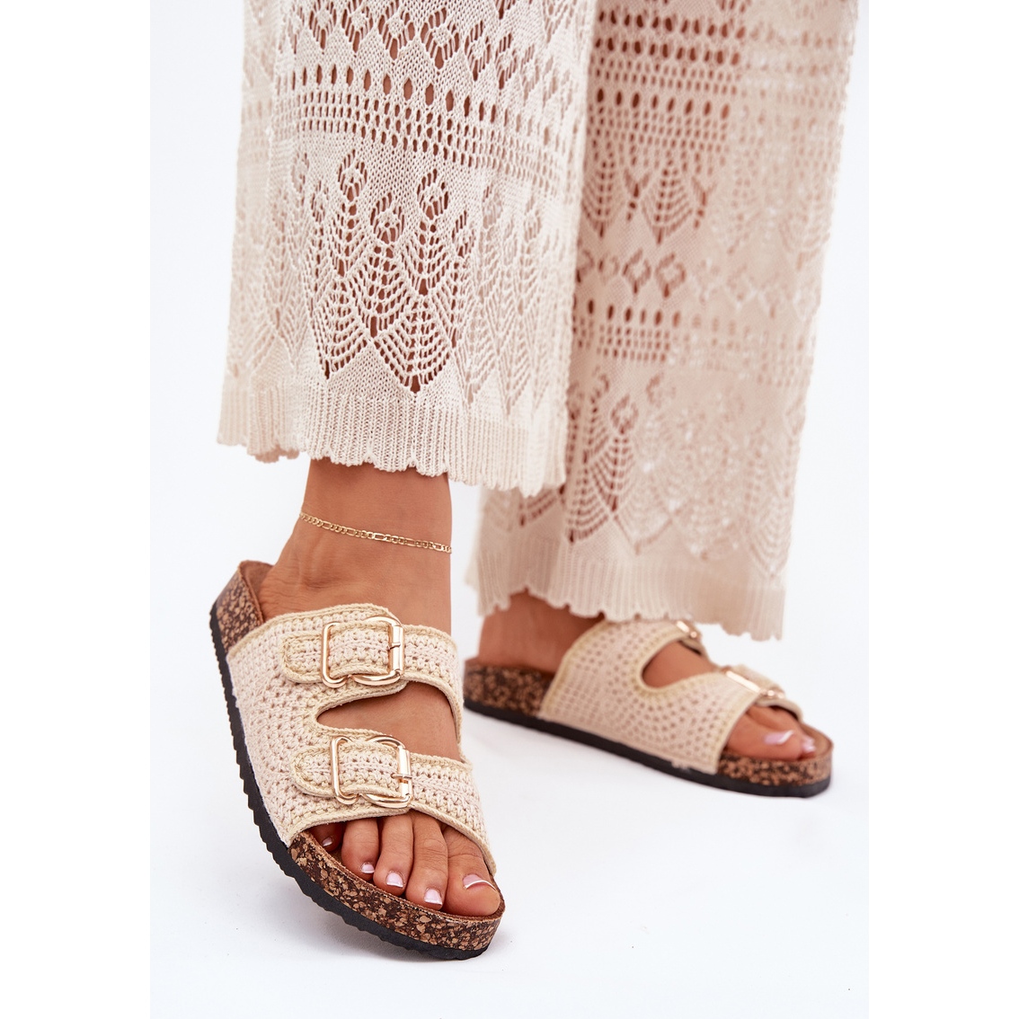 Pojedinosti: Kukičane ženske flip jarke sa zlatnim kopčama bež