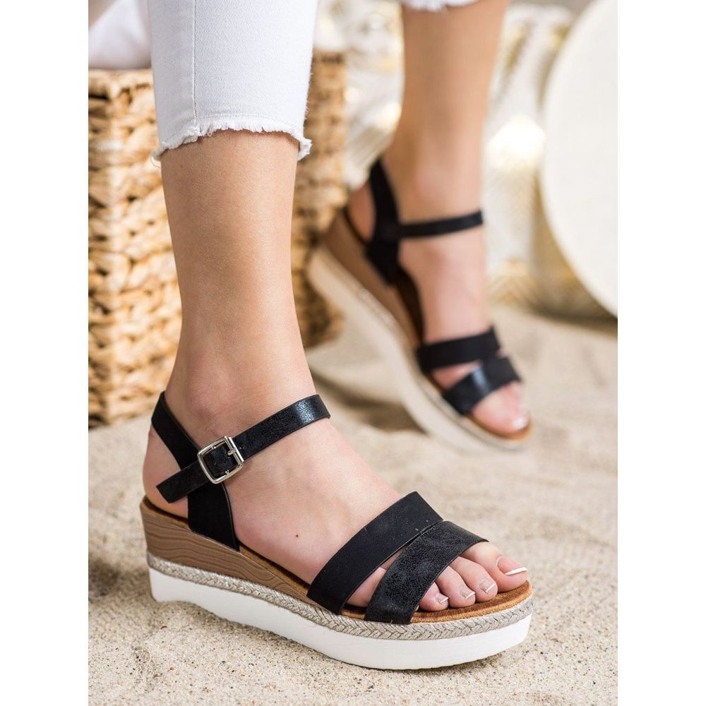 Pojedinosti: SHELOVET Lagane sandale na klinastu petu crna