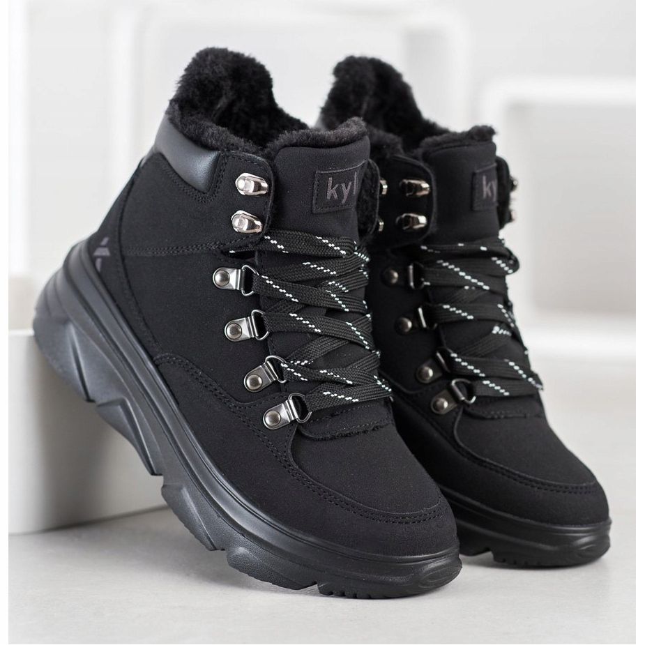 Otkrijte stil i udobnost uz lagane platformske zamke marke Kylie. Ove crne gležnjače savršena su kombinacija elegancije i sportske ležernosti, savršene za svakodnevni styling. Izrađeni od visokokvalitetne imitacije kože, ne samo da su estetski, već i ekološki prihvatljivi.