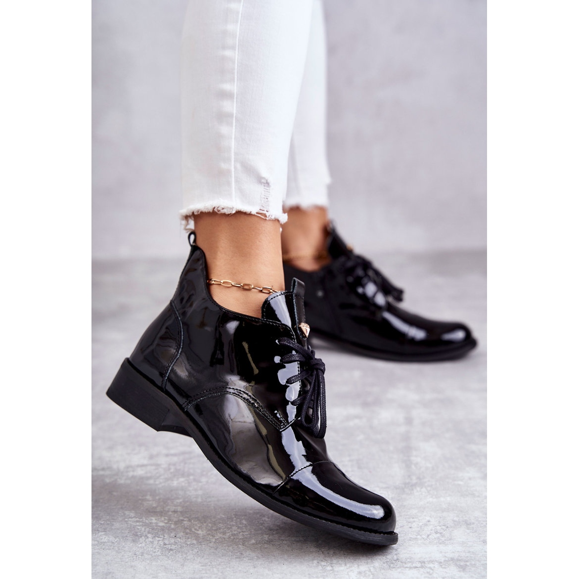 Lakirane čizme Čizme na vezanje Nicole 2781 crne crna