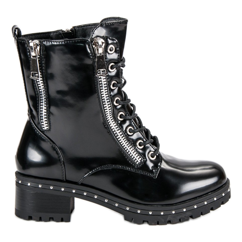 Otkrijte unikatne lakirane radničke čizme u elegantnoj crnoj boji koje su savršen izbor za hladnije dane. Ove elegantne cipele izrađene su od visokokvalitetne ekološke kože, što ih čini modernim i ekološki prihvatljivima. Njihov sjajni, lakirani učinak daje im jedinstven karakter, a istovremeno se savršeno uklapaju u mnoge stilove.