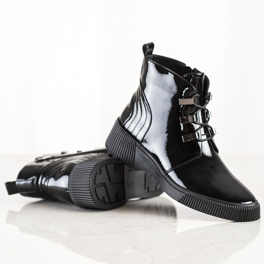 Izrađene od visokokvalitetne ekološke kože, čizme karakterizira sjajna završnica koja se savršeno uklapa u modne trendove. Model do gležnja s ravnom petom visine 4 cm osigurava stabilnost i udobnost tijekom svakodnevnog korištenja. Dodatno, udobnost nošenja povećava izolirana unutrašnjost i tekstilni umetak.