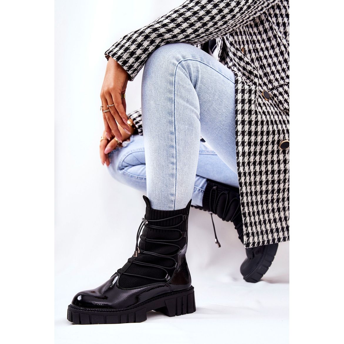 Pojedinosti: PL4 Lakirane čizme Radničke s čarapom Crna Connor
