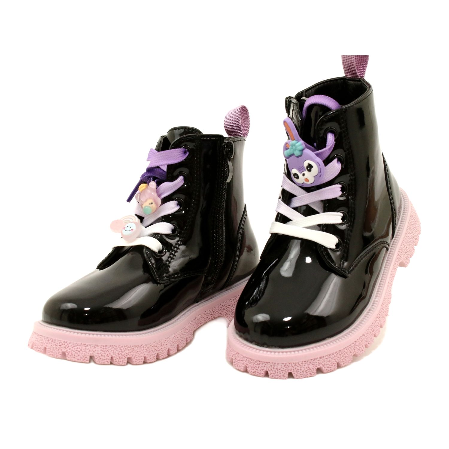 Miss 23dz23-6582 lakirane čizme u stilu i praktičnosti za djevojčicu. Izrađene od visokokvalitetne ekološke kože u elegantnoj crnoj boji s ružičastim naglascima, svakodnevno kombiniraju djevojački izgled s praktičnim rješenjima. Sjajni završni sloj i ukrasne manžete "kliknite" pričvršćene na čipke dodaju šarmantan, moderan aranžman.