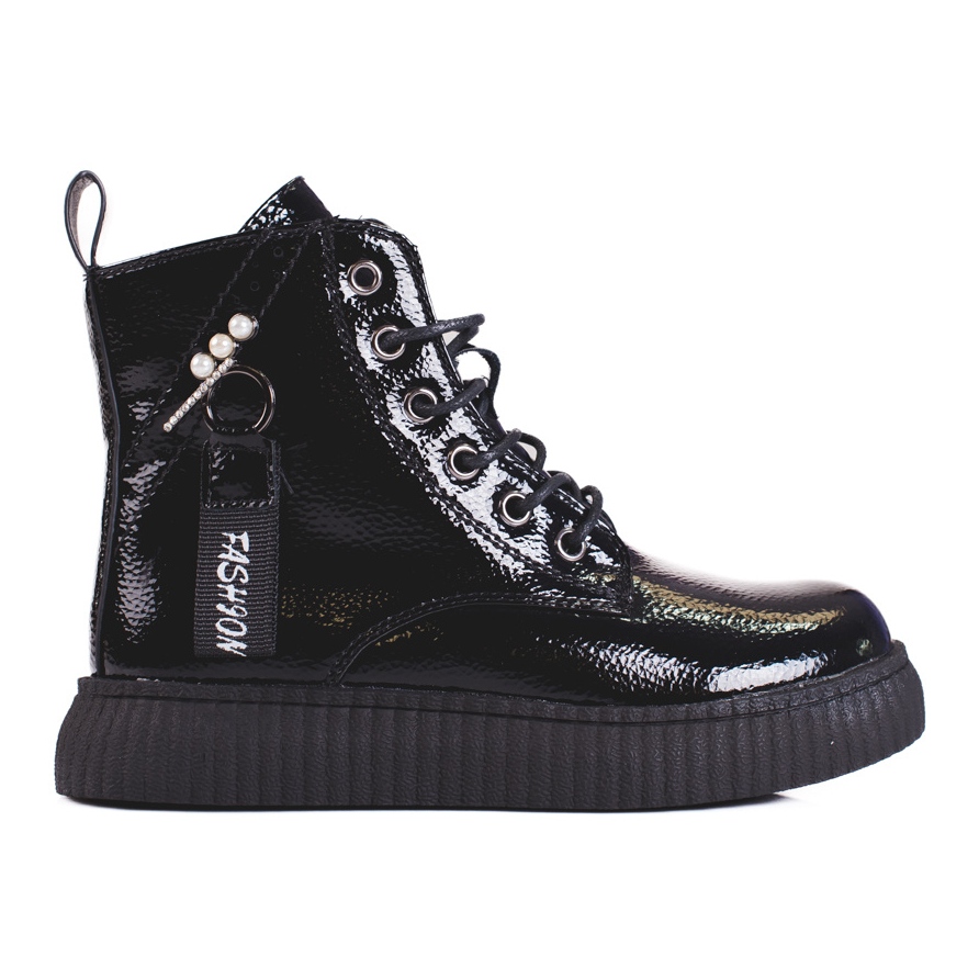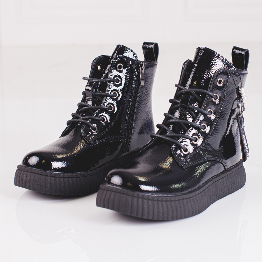 Otkrijte eleganciju i udobnost s lakiranim čizmama za djevojčice na Shelovet platformi u crnoj boji. Ove elegantne gležnjače, izrađene od visokokvalitetne ekološke kože, spajaju klasičan dizajn s modernim naglaskom. Zahvaljujući punom prstu i ugrađenoj, mekanoj peti, osiguravaju udobnost nošenja svaki dan iu svečanim prilikama.