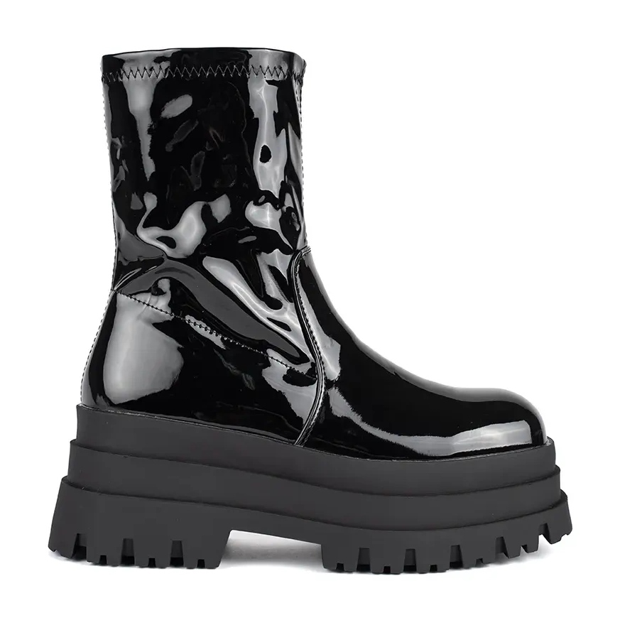 Pojedinosti: Lakirane crne gležnjače na visoku platformu crna