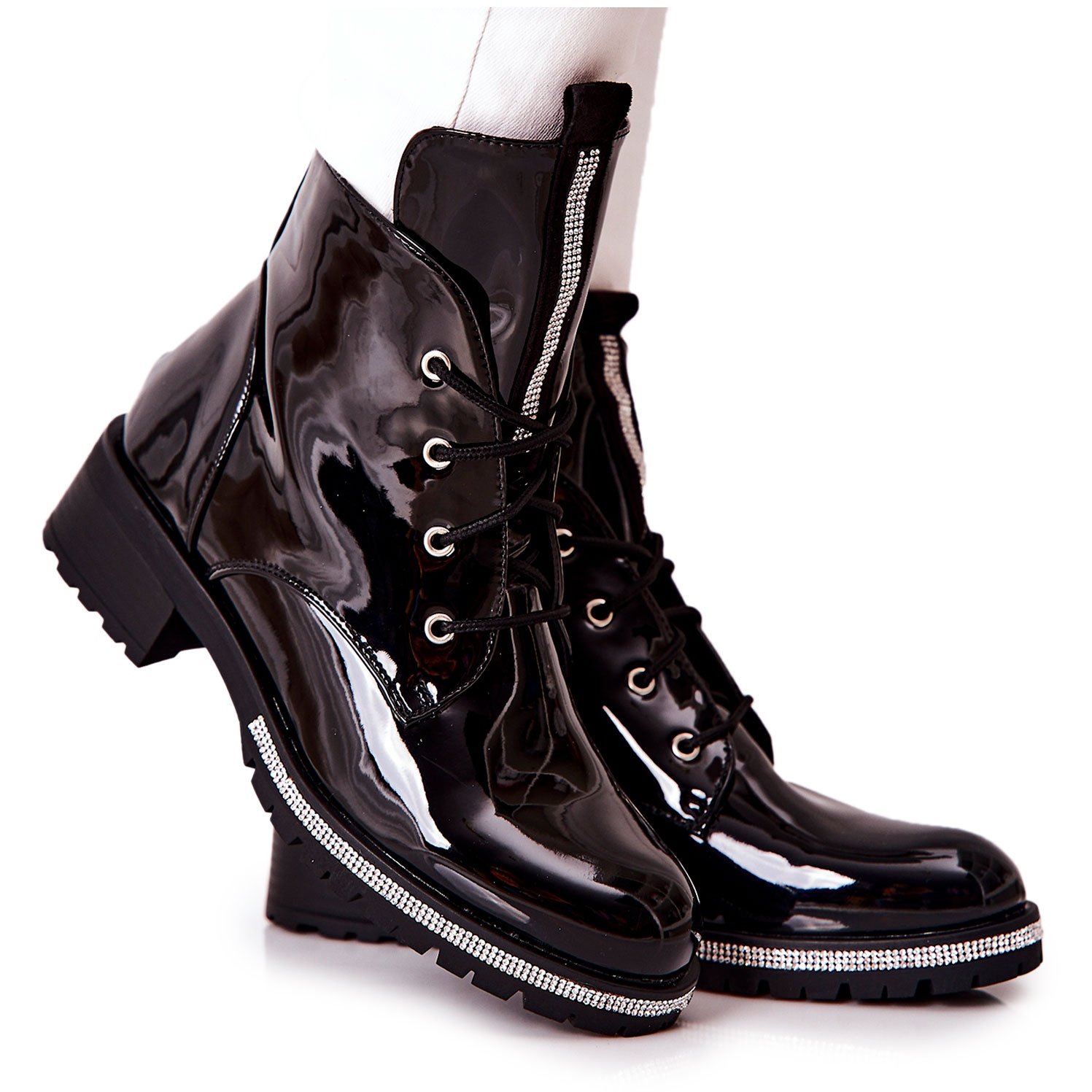Predstavljamo elegantan Grecia model čizama koji spaja stil i funkcionalnost. Izrađene od lakirane kože, ove crne gležnjače savršen su izbor za svaku modernu ženu koja se želi istaknuti iz gomile. Njihov originalan dizajn obogaćen ukrasnim kamenčićima na jeziku i oko potplata čini svaki korak jedinstvenim.