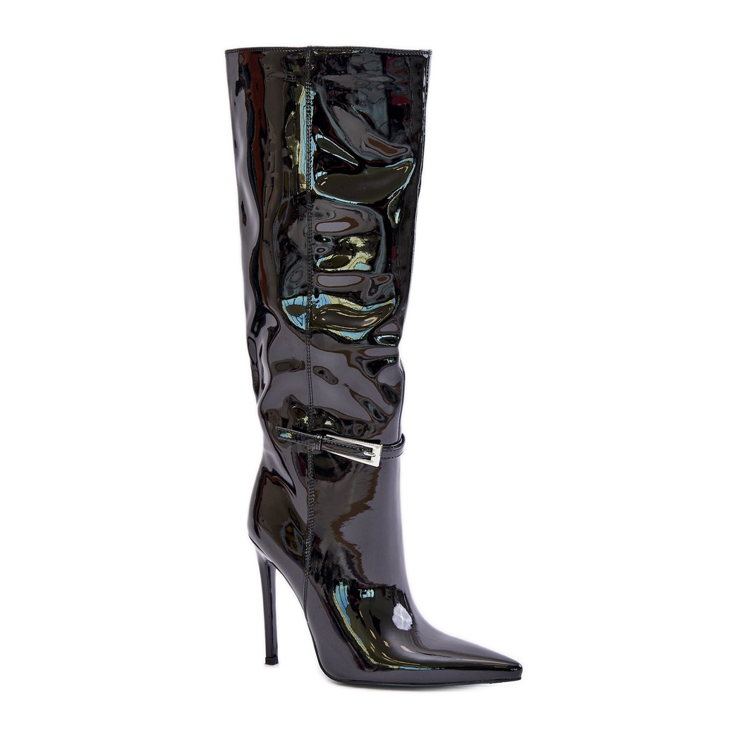 Lakirane izolirane čizme na visoku petu s kopčom, crne Tameliae crna