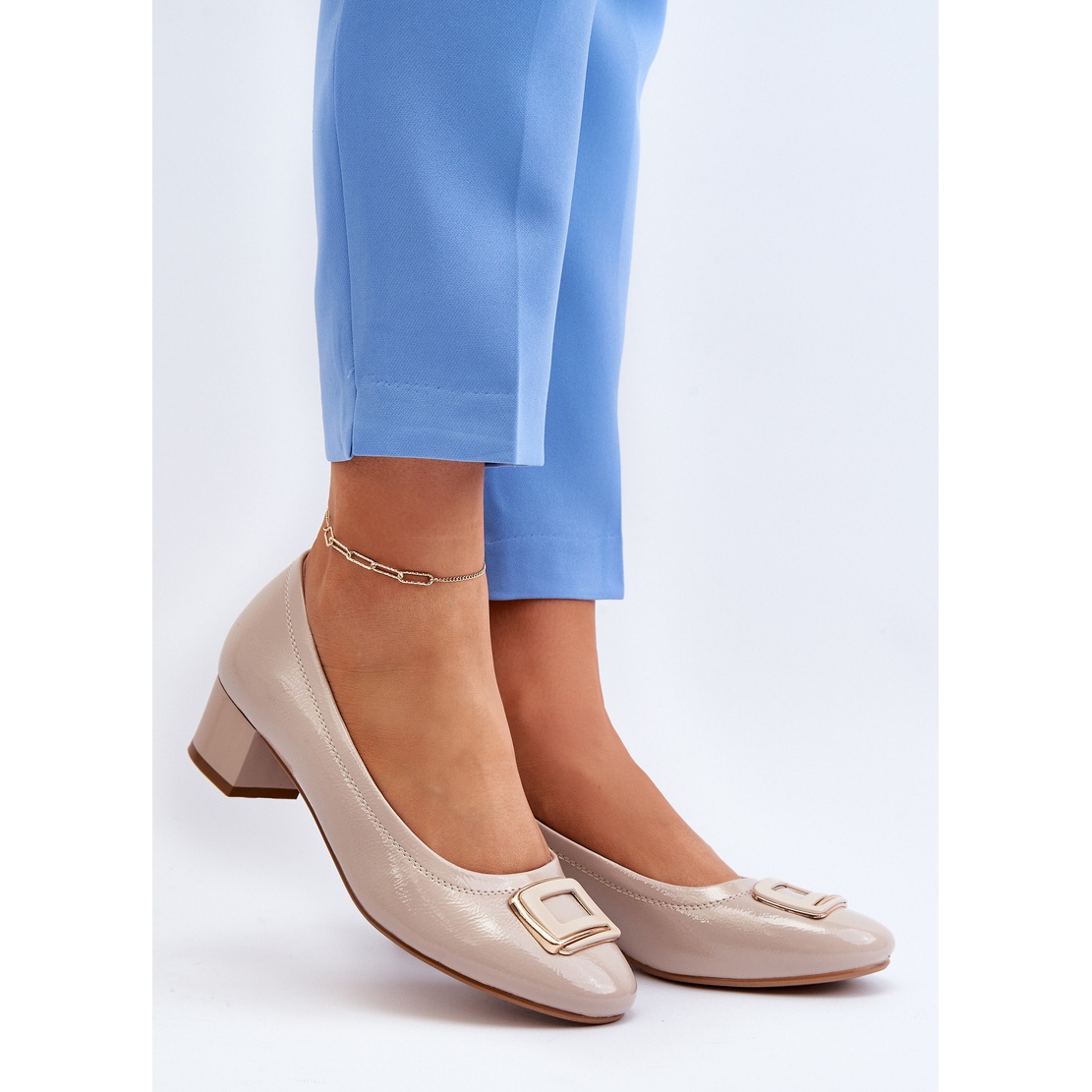 Vinceza Vinceza Lakirane kožne cipele na bloku s ukrasom, Beige Enollia bež