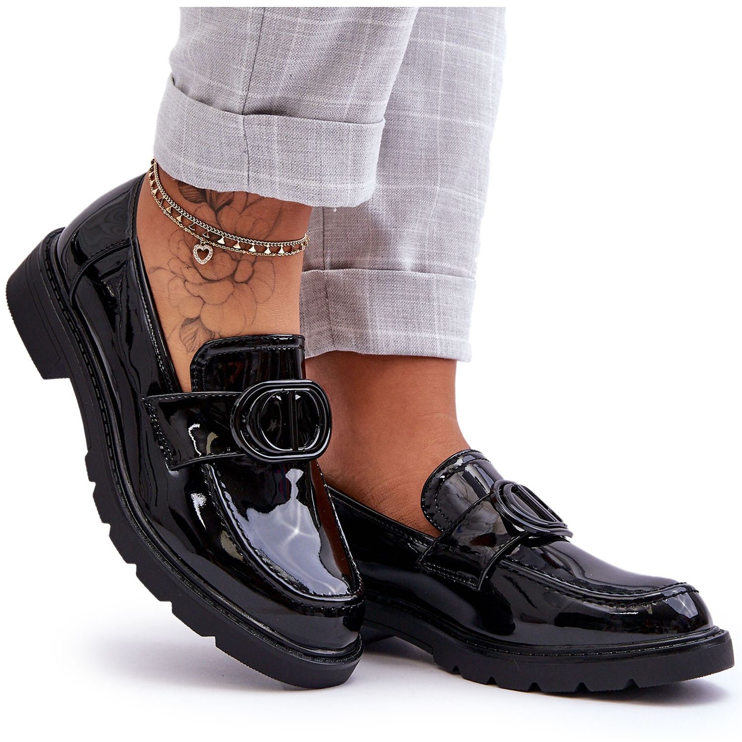 Predstavljamo elegantnu i udobnu obuću za modernu ženu - lakirane mokasine PG1 na platformu, crne boje Jarren. Ove elegantne cipele spajaju klasična svojstva mokasina s modernim dizajnom i savršena su nadopuna raznolikoj garderobi.