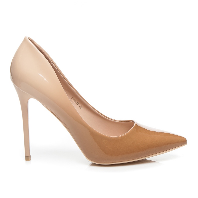 Vices pumpe odlikuje lakirana završna obrada koja im daje elegantan izgled, a nježan prijelaz smeđe i bež boje unosi notu modernosti i originalnosti. Zatvaranje na navlačenje olakšava ih obuvanje, što ih čini praktičnim izborom za svakodnevne i posebne prilike.