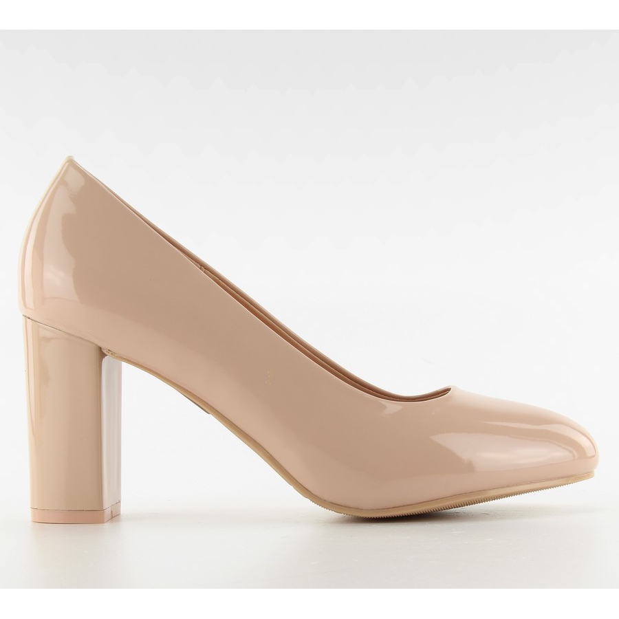 Lakirane pumpice široka peta m263p Bež višebojan ružičasta