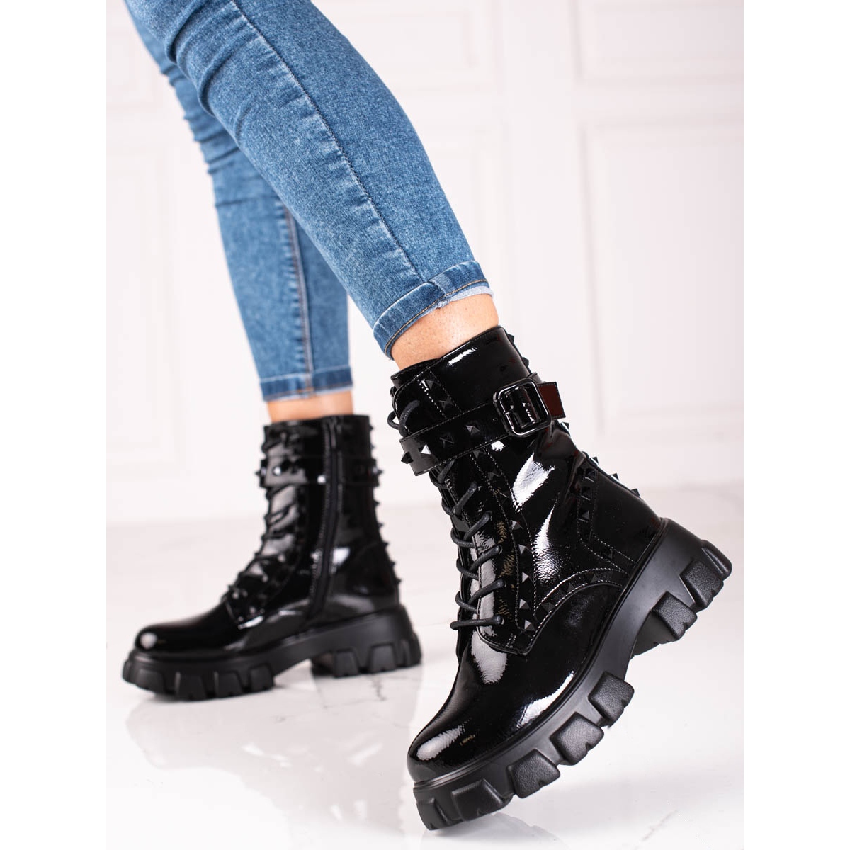 Ženska lakirana radnička torba Shelovet izvrstan je izbor za žene koje ne cijene samo stil, već i udobnost. Ove crne gležnjače spajaju casual i rock karakter, što ih čini savršenim za svakodnevne izlaske u sezoni jesen/zima.