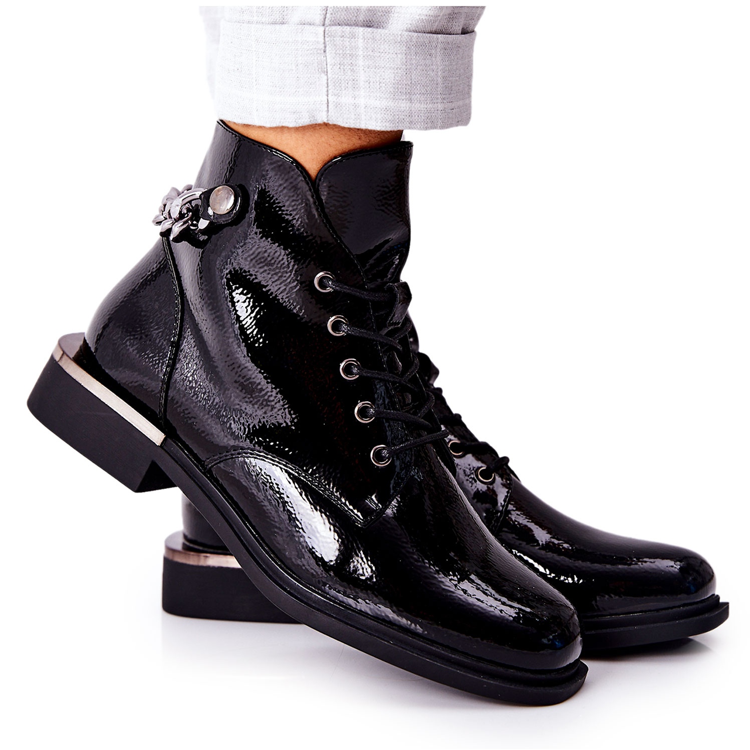Model BT405 dizajniran je za hladnije dane, nudeći toplinsku udobnost zahvaljujući nježnom krznu iznutra. Čizme imaju praktičan patentni zatvarač i mogu se podešavati zahvaljujući vezivanju što omogućuje savršeno pristajanje uz nogu. Dodatno, stražnji ukrasni lanac daje im jedinstven karakter.