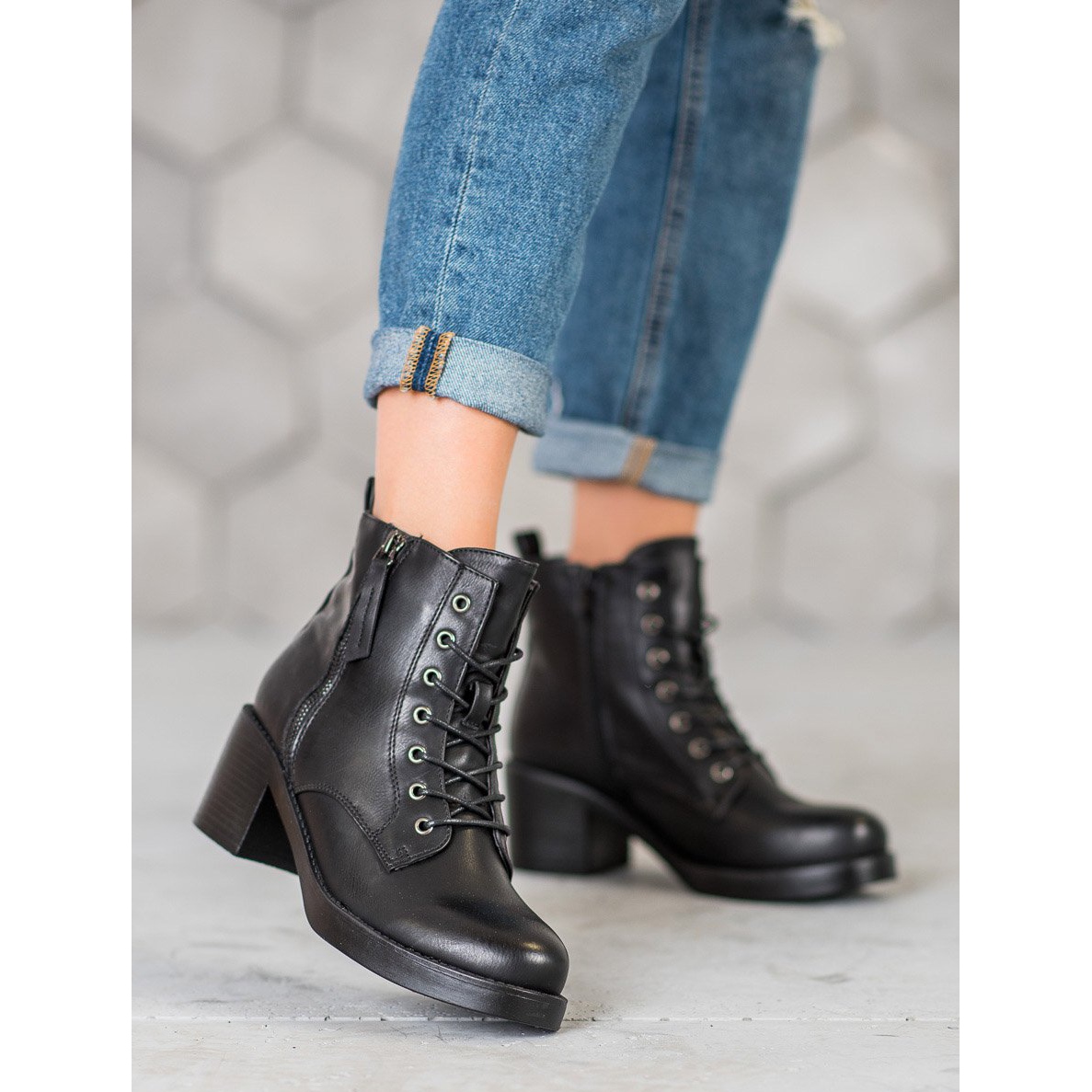 SHELOVET Gležnjače na visoku petu na vezanje crne - elegantna i udobna nadopuna vašoj zimskoj garderobi
