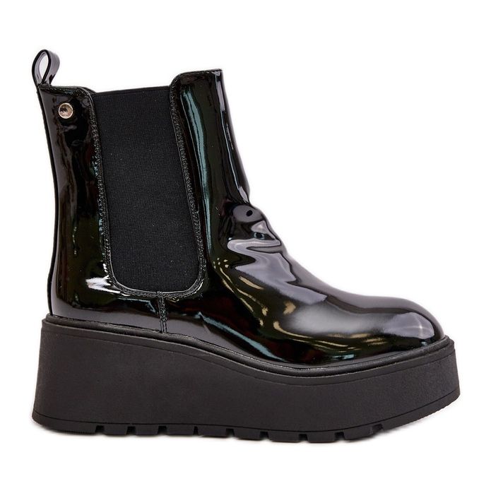 Lakirane ženske čizme na platformu i klin izolirane crne Wloedia crna