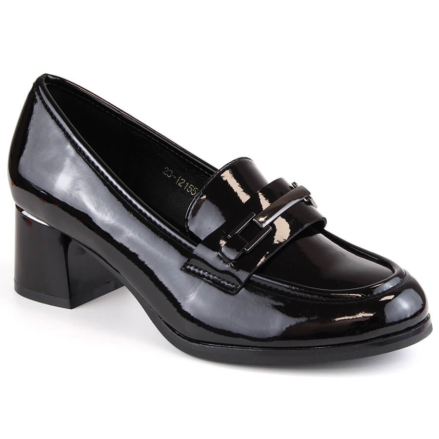 Potocki Lakirane ženske mokasine na visoku petu crne Potocki SZ12155 crno