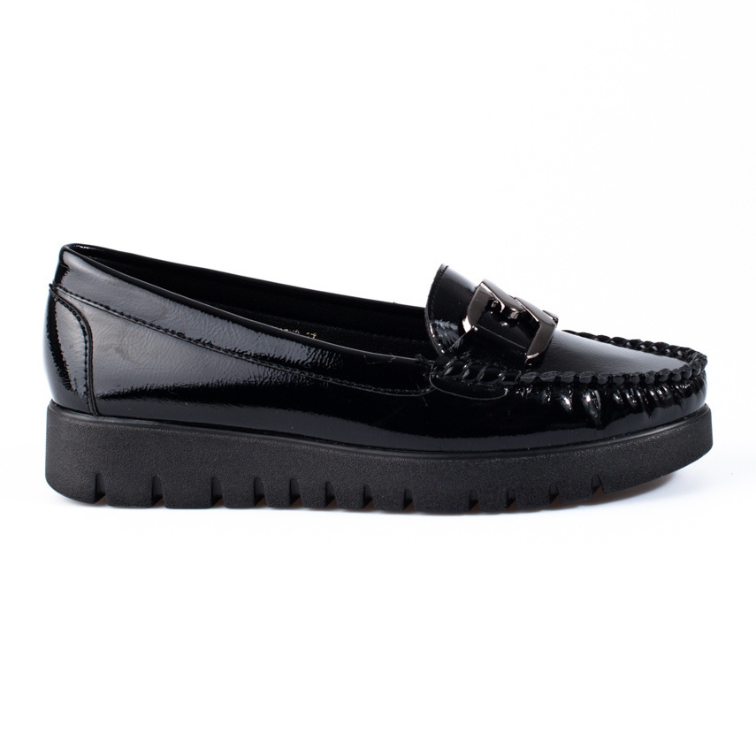 Ženske mokasine Potocki savršen su izbor za žene koje cijene eleganciju i udobnost u svakodnevnoj uporabi. Izrađene od lakirane umjetne kože u klasičnoj crnoj boji, ove mokasinke savršeno se uklapaju u casual i svečaniji stil. Zahvaljujući ugrađenoj peti i sistemu kopčanja slip-on, obuvanje je brzo i udobno.