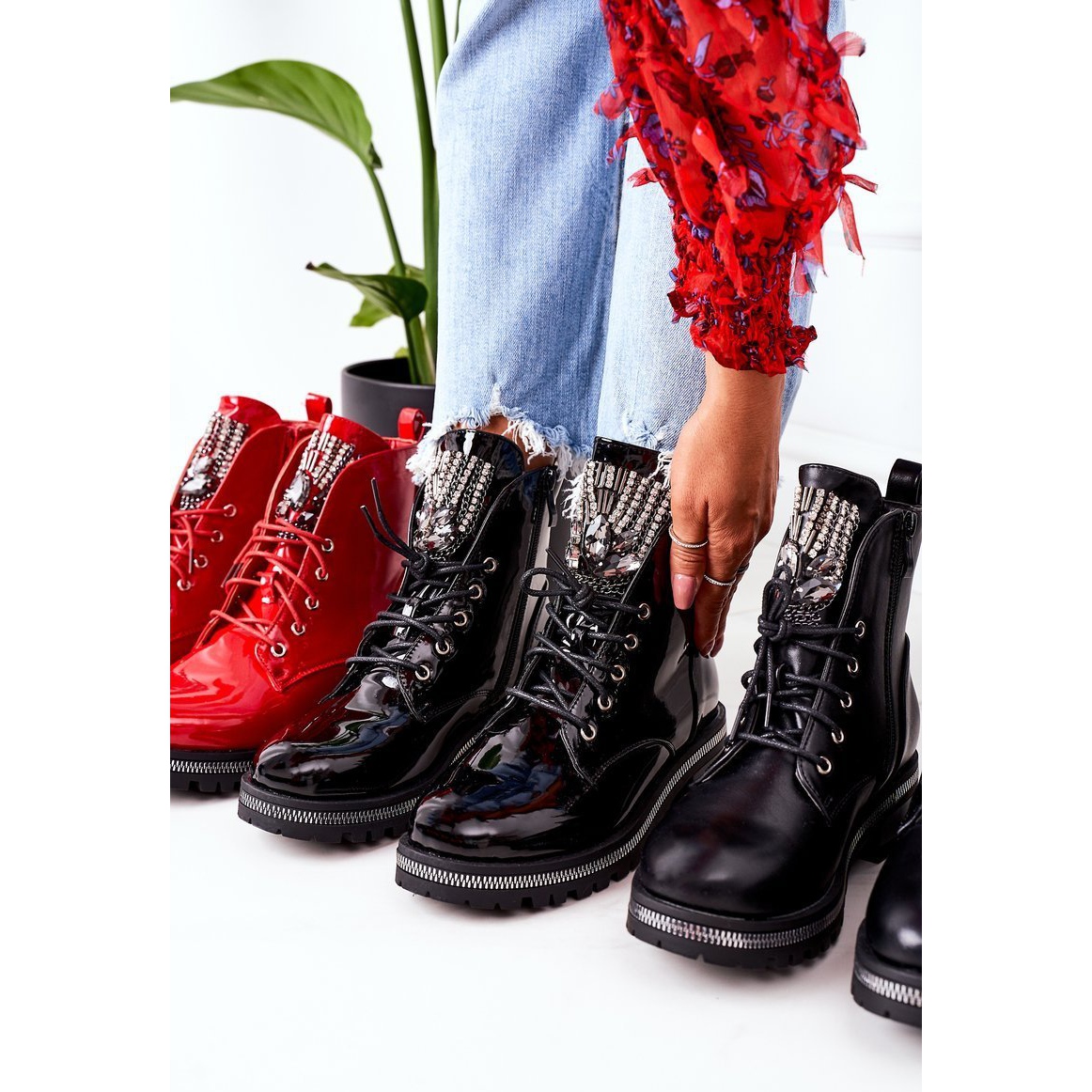 Otkrijte jedinstven stil i udobnost u ženskim gležnjačama - patentiranim izoliranim radničkim čizmama s Attention kamenčićima u klasičnoj crnoj boji. Ove elegantne i moderne čizme izrađene su od visokokvalitetne lakirane kože koja osigurava ne samo atraktivan izgled, već i izdržljivost.