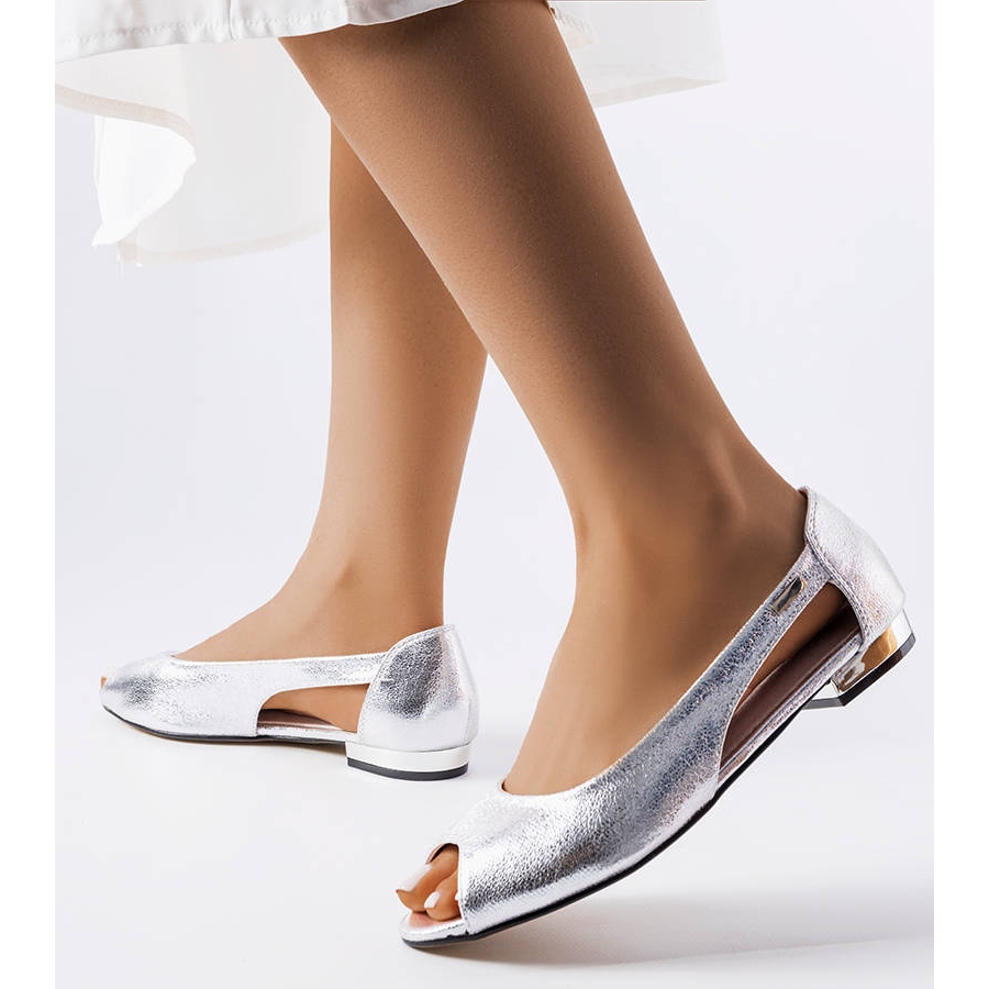 Pojedinosti: Lane srebrne metalik balerinke s izrezima srebro