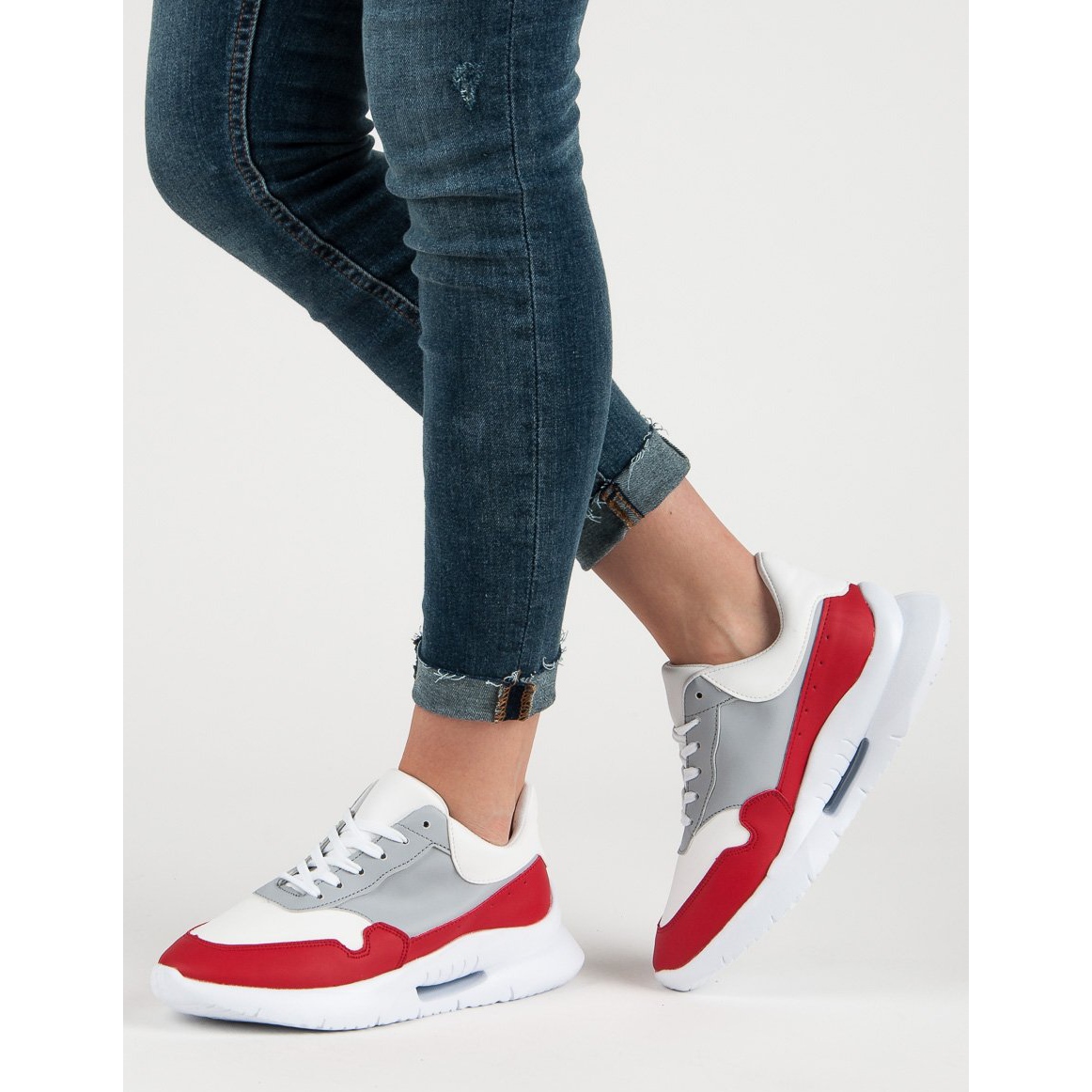 Predstavljamo izvanrednu casual sportsku obuću koja spaja moderan dizajn i visoku funkcionalnost. Ove elegantne ženske cipele u bijeloj boji s crvenim detaljima savršeno se uklapaju u najnovije trendove u svakodnevnom stilu, a istovremeno osiguravaju udobnost na svakom koraku.