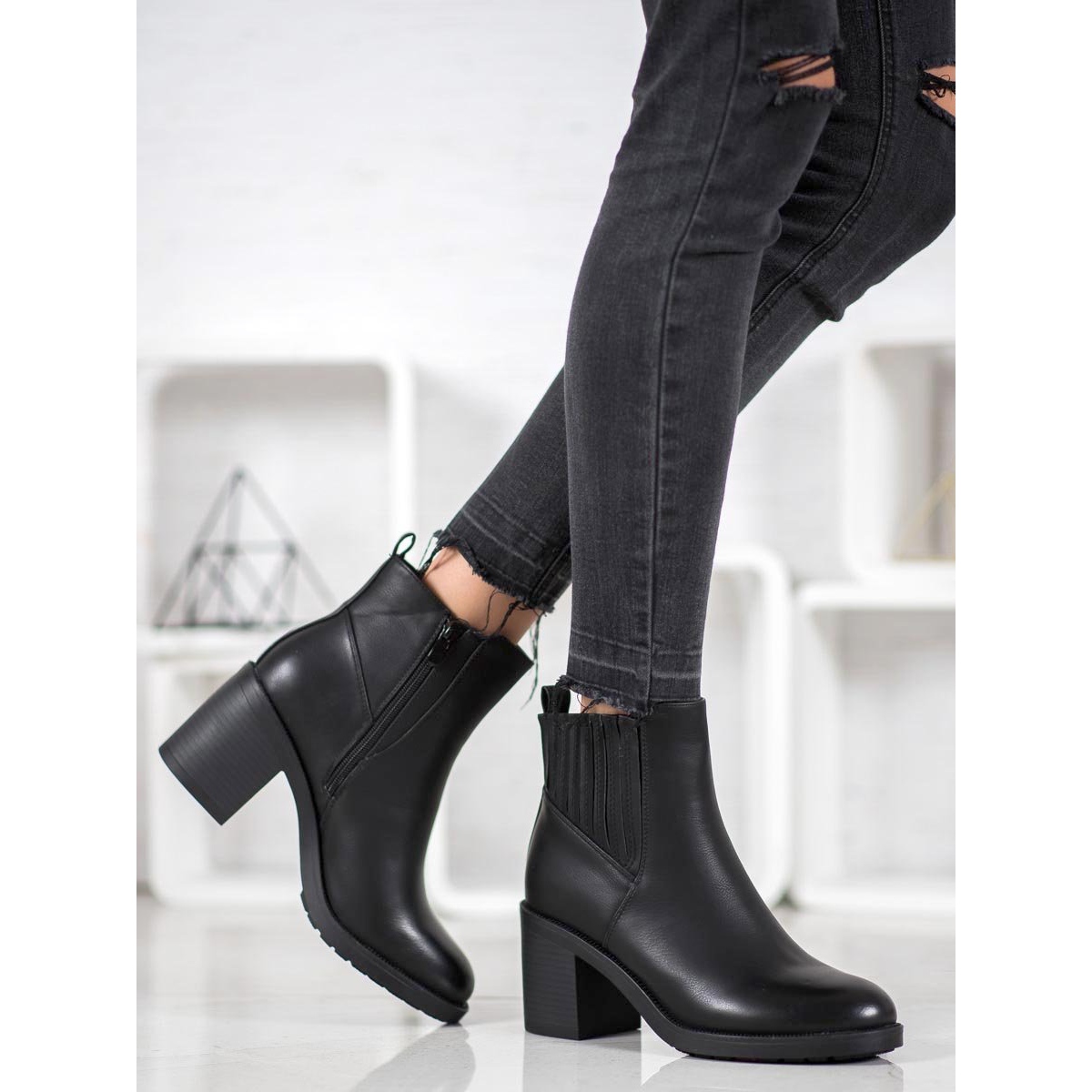 Super Mode gležnjače na visoku petu savršen su izbor za sve žene koje žele spojiti modu i udobnost. Ove elegantne crne gležnjače odlikuje se ukrasnim gornjištem koje im daje jedinstven karakter. Izrađene od estetskog materijala nalik koži, jamče ne samo moderan izgled, već i izdržljivost.