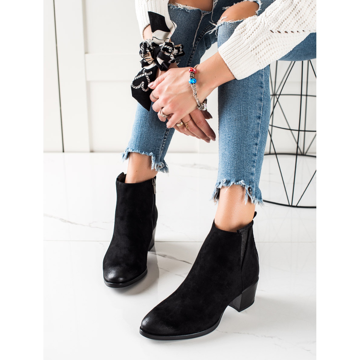 Ovaj model karakterizira izgrađena, ukrućena peta, koja daje odgovarajuću potporu stopalu. Plastični potplat s gazištem jamči stabilnost i trakciju, što je iznimno važno u hladnijim danima. Zahvaljujući visini pete od 5 cm, čizme će dodati eleganciju svakom outfitu bez gubitka udobnosti.