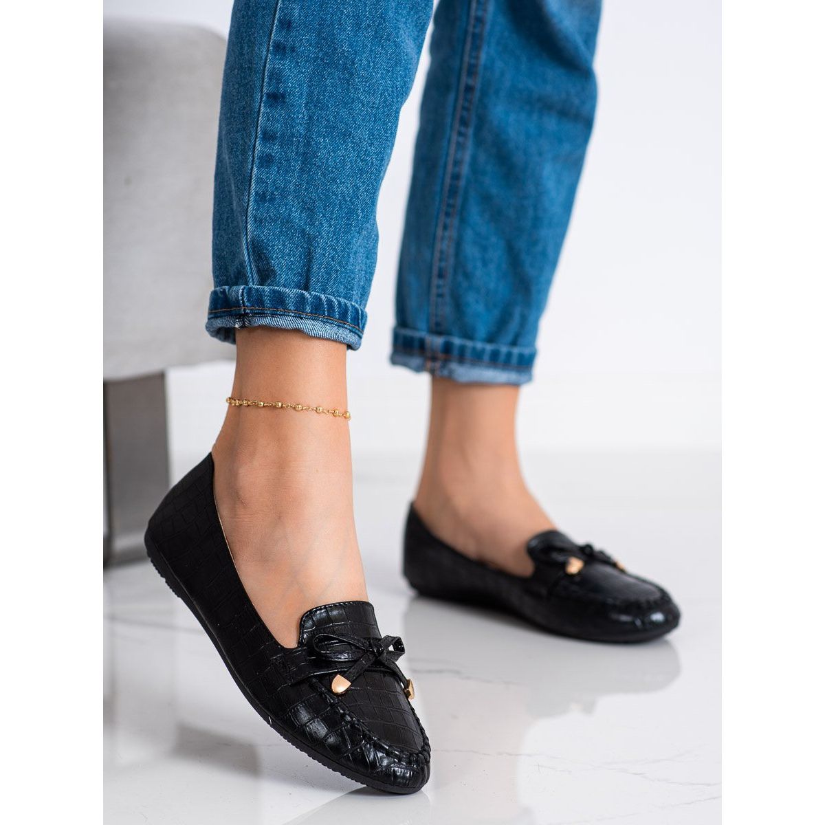 Mokasine imaju ugrađenu, mekanu petu, koja osigurava udobnost nošenja tijekom cijelog dana. Okrugli nos i nježna mašna na vrhu dodaju im šarm. Zahvaljujući slip-on kopčanju, obuvanje i izuvanje je izuzetno jednostavno, što ih čini praktičnim rješenjem za svakodnevnu upotrebu.