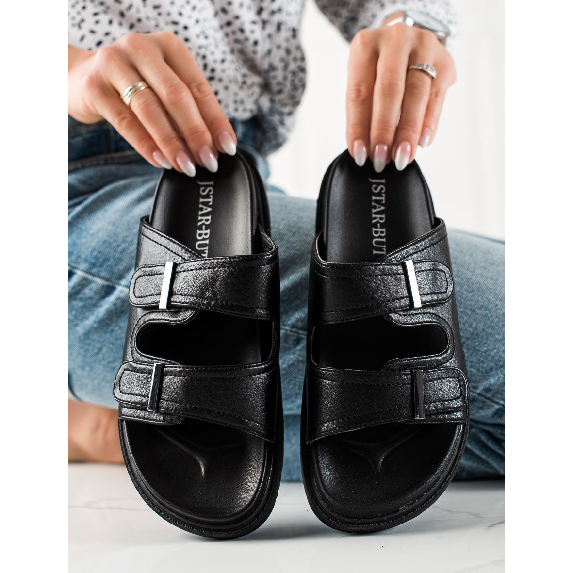 Otkrijte novu dimenziju udobnosti i stila s čičak preklopima iz J. Stara! Ove ležerne japanke u klasičnoj crnoj boji savršen su izbor za tople proljetne i ljetne dane. Izrađene od visokokvalitetne ekološke kože, ne samo da izgledaju izvrsno, već i brinu o okolišu.